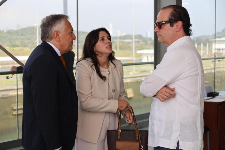 – La delegación fue recibida por la ingeniera Ilya Espino de Marotta, subadministradora del Canal de Panamá, quien ofreció una completa visita guiada a las instalaciones.