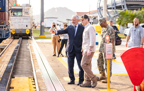 El administrador Ricaurte Vásquez Morales, recibió en las esclusas de Miraflores, al secretario de Defensa de EE.UU., Pete Hegseth; al almirante Alvin Holsey, jefe del Comando Sur de los Estados Unidos, y al resto de su comitiva. (Foto, Oficina de Comunicación e Imagen Corporativa de la ACP). Colaboración del Canal de Panamá - Como parte de... Leer más →