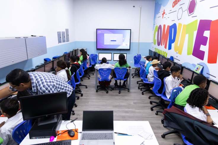 – Este modelo educativo de aprendizaje para los estudiantes, incluye remodelación de paredes, puertas, ventanales, cielo raso, luminarias, sistema eléctrico, ventiladores, equipo de informática y mobiliario (sillas y escritorios) para ser flexibles y adaptables a las necesidades de los estudiantes.