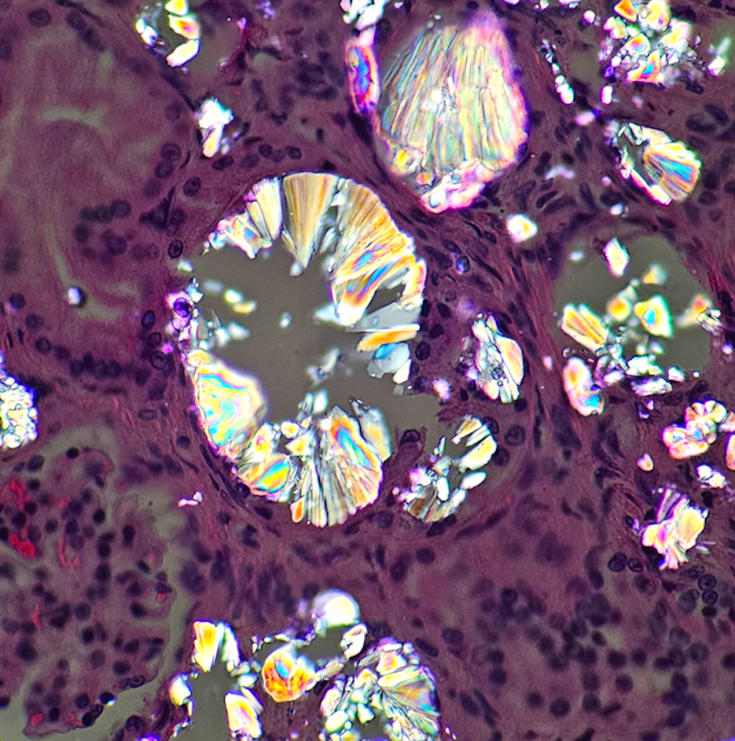 – “Y la foto que obtuvo el segundo lugar en la categoría Viewers’ Choice, -informó- la de los cristales de oxalato de calcio, la tomé como parte de uno de los casos que evalué en una de las materias de doctorado”.