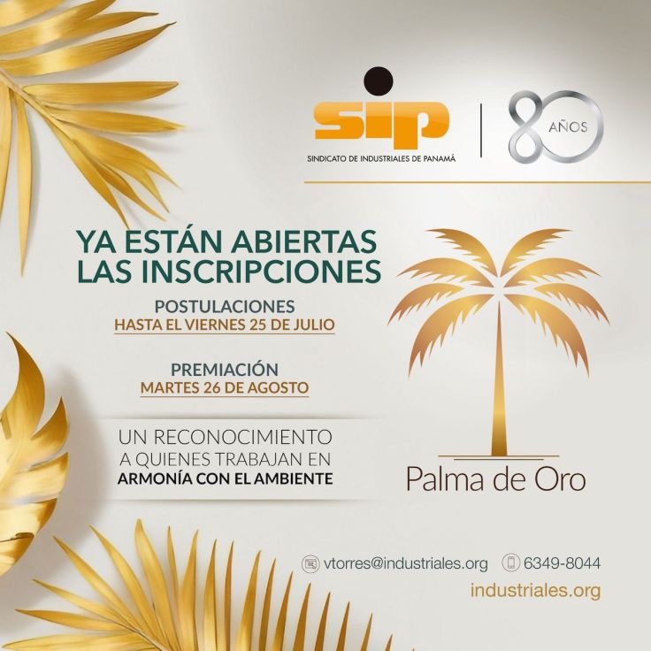 – El Sindicato de Industriales de Panamá (SIP), anunció que “ya están abiertas las postulaciones al Premio Palma de Oro 2025, el máximo reconocimiento a las organizaciones panameñas que lideran con acciones sostenibles y compromiso ambiental”.