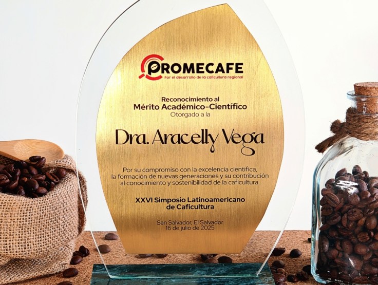 – Esta distinción, otorgada por el Programa Cooperativo Regional para el Desarrollo Tecnológico y Modernización de la Caficultura (Promecafe) y el Instituto Salvadoreño del Café, fue entregada a la Dra. Vega por su “compromiso inquebrantable con la excelencia científica, la formación de nuevas generaciones y su invaluable contribución al conocimiento y sostenibilidad de la caficultura a nivel regional”.
