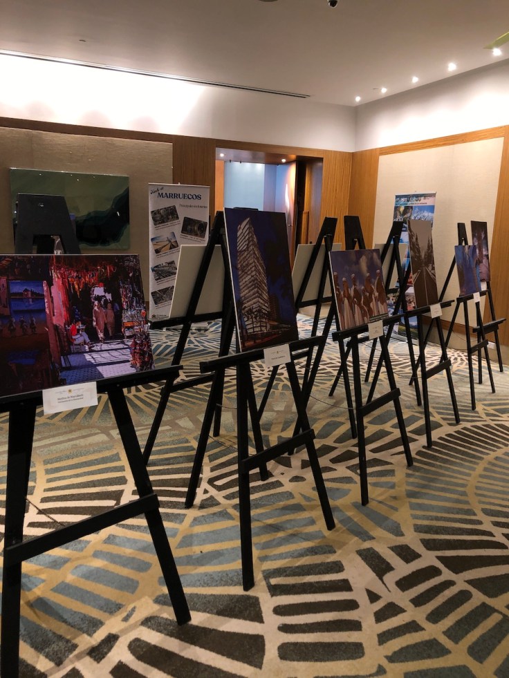 – La mencionada conmemoración también es conocida como la “Fiesta del Trono”, y por ello la Embajada del Reino de Marruecos presentó una exposición pictórica de algunos de sus artistas, degustación de té, con su barista sentado sobre una alfombra y en el piso, además de la deliciosa comida y pastelería marroquíes.