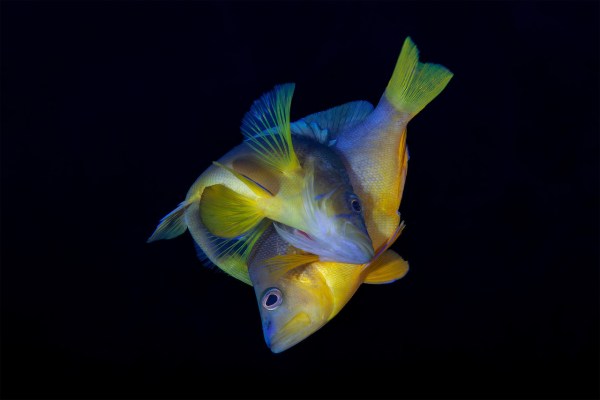 Dos peces vacas o meros de vientre amarillo (Hypoplectrus aberrans) desovando en Dominica. Los peces vacas o meros son hermafroditas simultáneos. El individuo de arriba, que adopta una forma de «U» inclinada, desova en el rol masculino, mientras que el individuo de abajo desova en el rol femenino. (Foto, ©Carlos & Allison Estapé). Colaboración delInstituto... Leer más →