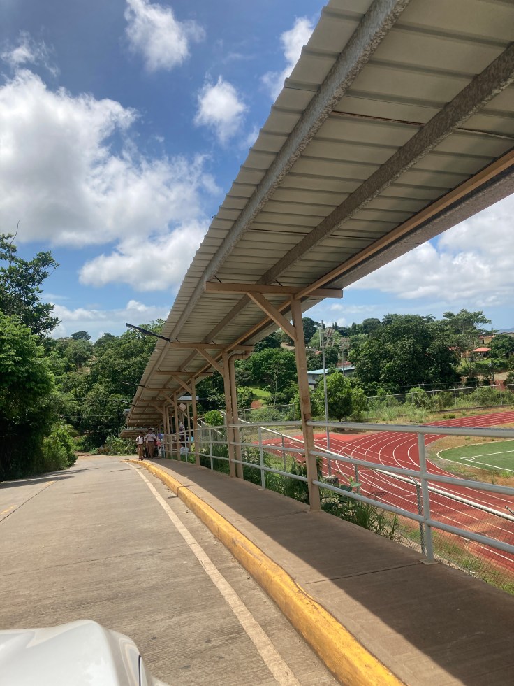 – En una pequeña gira que realicé por los predios me llamó poderosamente la atención que esta entidad cuenta con una marquesina de gran longitud, que se extiende desde la vía principal del poblado hasta la entrada de las instalaciones del colegio.