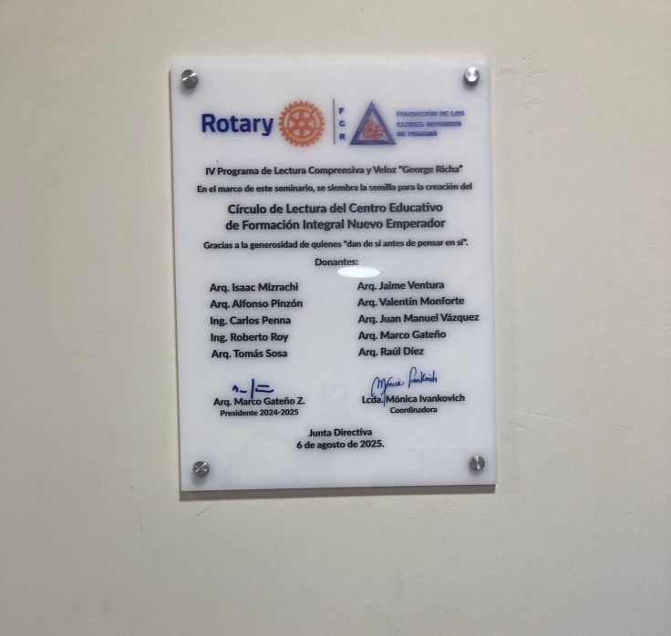 – Ayer, 6 de agosto de 2025, supe las respuestas a esta incógnita, durante la inauguración del “Rincón de Lectura de CEFINE”, proyecto de la Fundación de los Clubes Rotarios de Panamá (FCRP), que preside el Arq. Marco Gateño, a través de su programa insignia Lectura Comprensiva y Veloz “George Richa”, en honor al desaparecido integrante de esta organización.