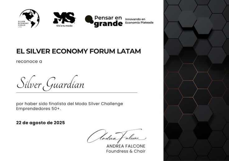 – Recientemente, en el prestigioso Silver Challenge del Silver Economy Forum LATAM”, fue galardonada con el primer lugar en la categoría “Emprendedores 50+ que Inspiran a la Región, la innovadora plataforma digital para el bienestar y la salud integral de adultos mayores, Silver Guardian.