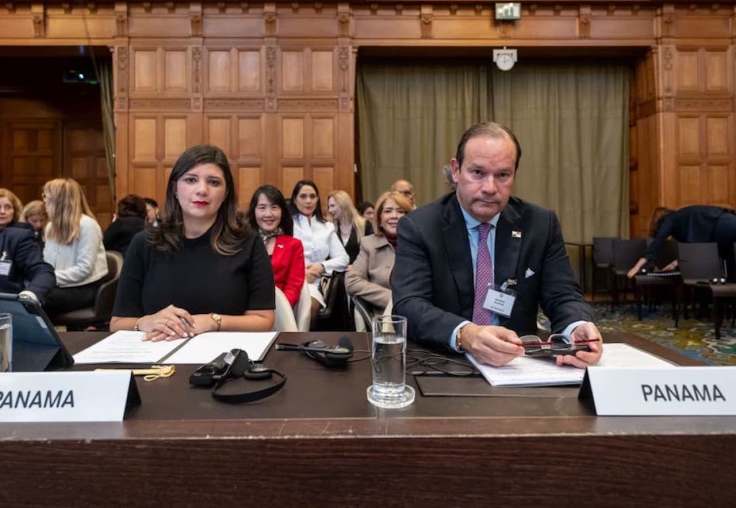 – El jefe de la diplomacia panameña estuvo acompañado en la audiencia pública por Jackeline Muñoz de Cedeño, ministra de Trabajo Desarrollo Laboral y su equipo técnico; la embajadora de Panamá en Países Bajos, Sally Loo Hui; la secretaria general del Ministerio de Relaciones Exteriores, Lizbeth Hernández Altafulla; y el asesor Adolfo Ahumada.