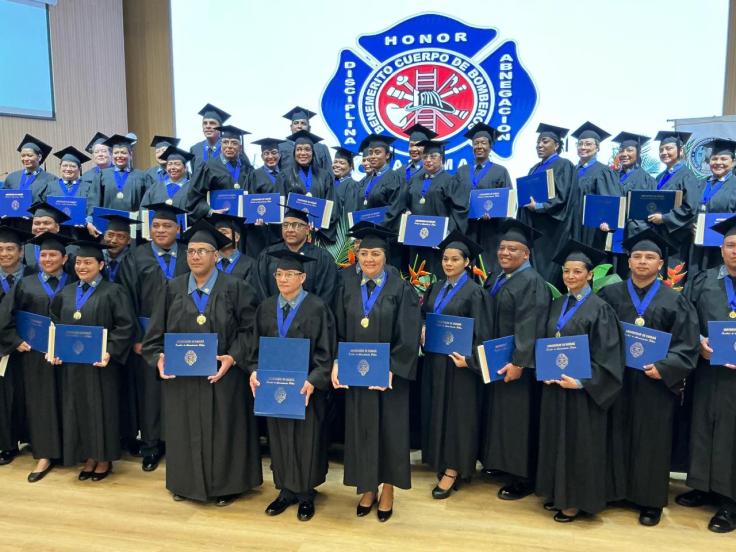– El diploma que los acredita como Técnicos en Administración de Temas Bomberiles, recibieron más de 50 unidades del Benemérito Cuerpo de Bomberos de la República de Panamá (BCBRP), procedentes de distintas zonas del país, el martes 21 de octubre de 2025.