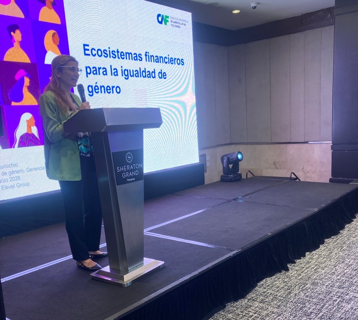3.- Bárbara Auriccio, especialista de Género en CAF, se refirió al “Ecosistema Financiero para la igualdad de género” y, entre otras indicaciones, explicó la necesidad de ayudar a las mujeres emprendedoras para que logren el acceso al financiamiento.