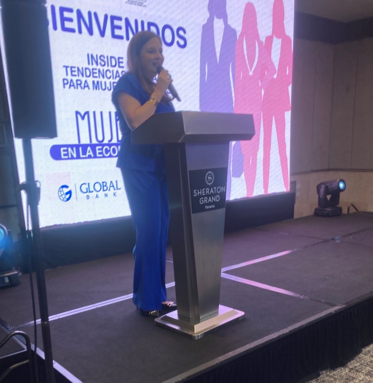 1.- Farah Bhiku, gerente de Producto de Global Bank, mencionó el premio «Mujeres Únicas, construyendo un futuro sostenible», que en este año se efectuará la segunda edición, aparte de otras iniciativas en apoyo a las mujeres, como el aprendizaje continuo, networking, etc.