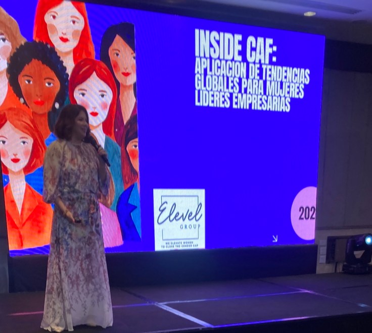 5.- Katherine Shahani, fundadora de Elevel Group, ilustró a la asistencia en cuanto a “INSIDE CAF: Aplicación de tendencias globales para mujeres empresarias”. Enfatizó en la importancia de la confianza, seguridad y capacitación del talento humano, el cual es vital para la competitividad de un país.