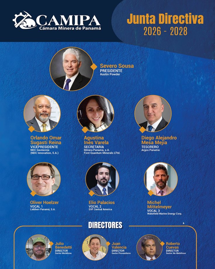 – El empresario y líder de diferentes gremios empresariales, Severo Sousa, preside la Junta Directiva de la Cámara Minera de Panamá (CAMIPA), para el período 2026–2028, por mandato de la Asamblea General celebrada el pasado 31 de marzo.